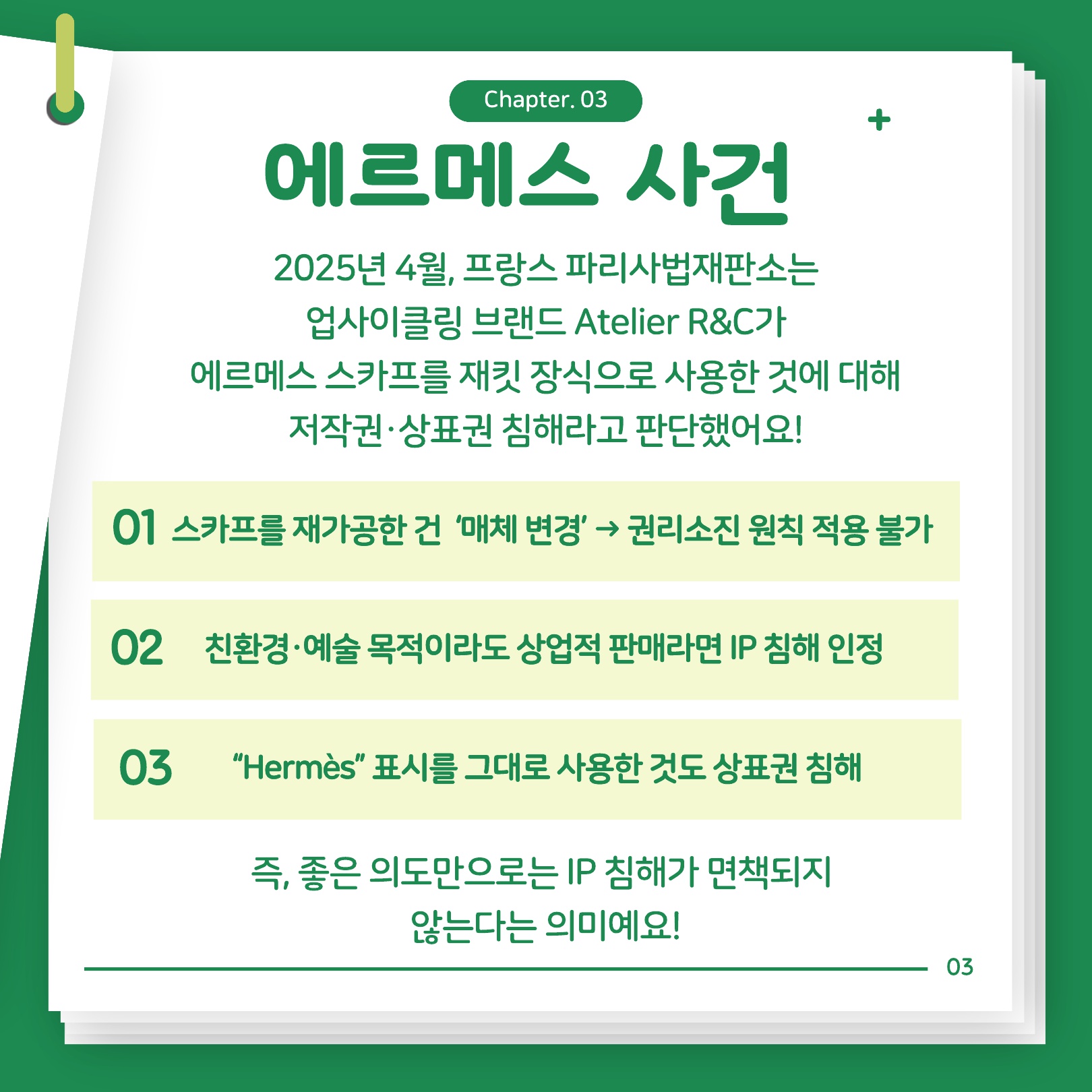 최근 프랑스의 에르메스 사례처럼 재활용·업사이클링이 상표권·저작권 분쟁에 휘말릴 수 있답니다!